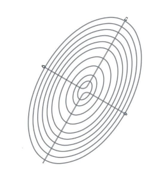 Aerotech® 24" circulation fan guard grill for Classic AT direct drive and "RC" Series fan discharge cones. Grill measures 24-1/8" diameter. Includes 4 yellow plastic end caps.